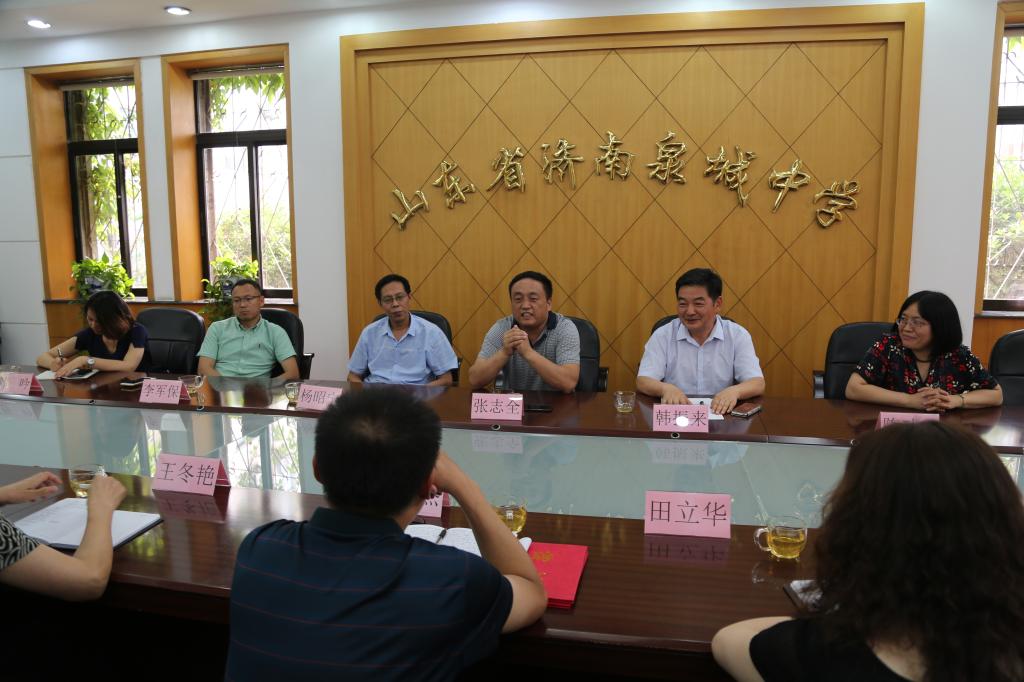 与泉城中学是两所以省会城市命名的学校,两校的合作是互利共赢的。泉城中学优秀的教育教学质量、开放的办学特色为我校教育硕士的培养提供了丰富的资源,他希望双方导师能够加强交流,促进合作,切实提升我校教育硕士的培养质量。