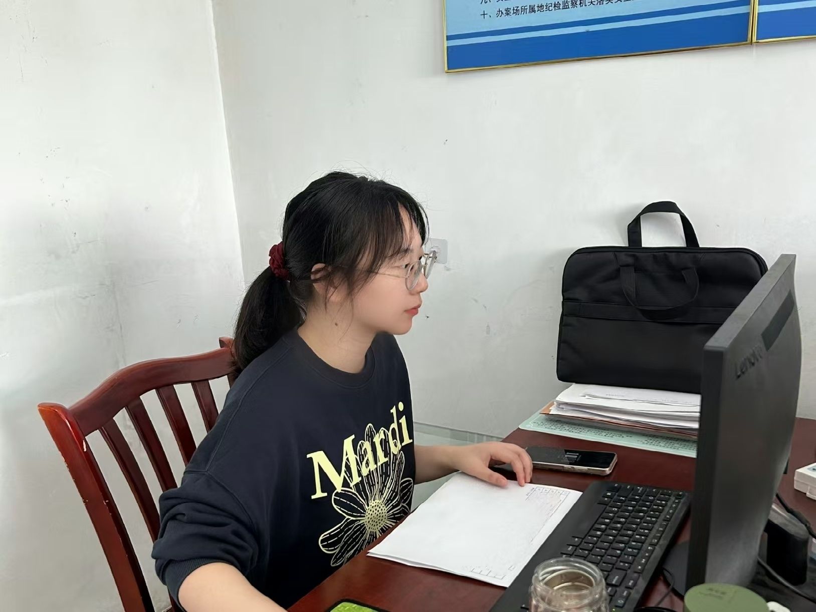 朱润知现服务于山东省泰安市肥城市湖屯镇人民政府,服务期间主要协助镇纪委工作,为受处分党员干部案卷整理和来访群众信访处置等。此外,积极参与镇党风廉政教育基地讲解、建设学习型党组织青年干部辩论赛、新春文艺汇演快板演出、学习交流会心得分享和企业实地参观等各类活动。她常说,“基层工作或许没有惊天动地的大事,但每件小事都值得用心去做。从大学到社会的跨越,让我深刻理解‘志愿者’三个字的含义,不断深化对‘奉献、友爱、互助、进步’志愿服务精神的认识。习近平总书记给谢依特小学戍边支教西部计划志愿者服务队的回信强调,到祖国和人民最需要的地方发光发热,为中国式现代化建设贡献青春力量。若能重新选择,我依然会毫不犹豫地奔赴这场志愿服务之约,为基层发展添活力,为祖国建设献力量!”