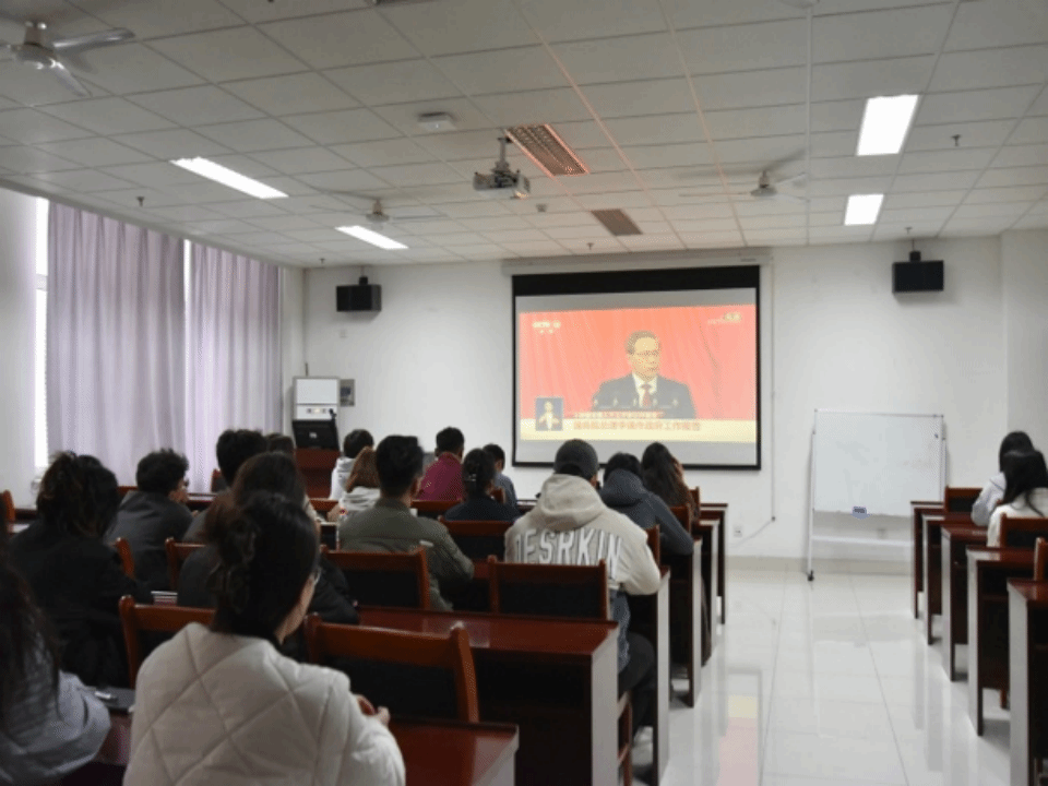 少数民族师生深刻学习和领会全国两会精神,扎实推进铸牢中华民族共同体意识,增强各民族学生之间交往交流和交融,3月11日,学院组织少数民族学生在学院会议室集中学习全国两会精神。