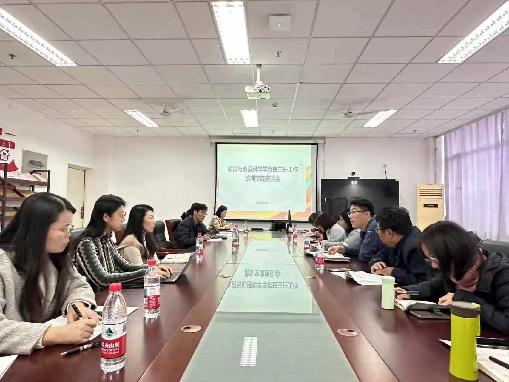 在特教楼A513召开班主任工作培训交流座谈会。学院党委副书记冯潍、全体辅导员和班主任参加了本次会议。