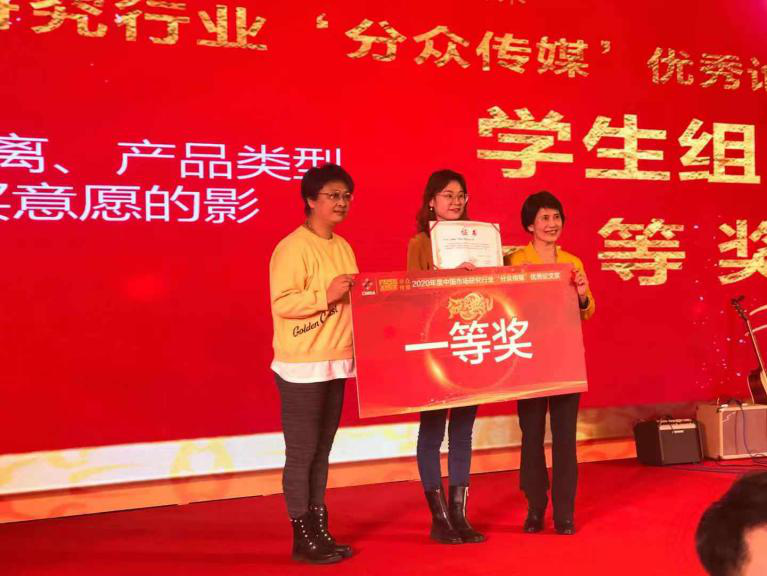 仅有一篇论文——《秩序"景”然:心理距离、产品类型对价格-质量评价、购买意愿的影响——秩序的调节作用》入围2020年"中国市场研究行业分众传媒优秀论文奖" (学生组)决赛答辩,并于11月11日进行现场答辩,最终荣获此次比赛(学生组)一等奖。