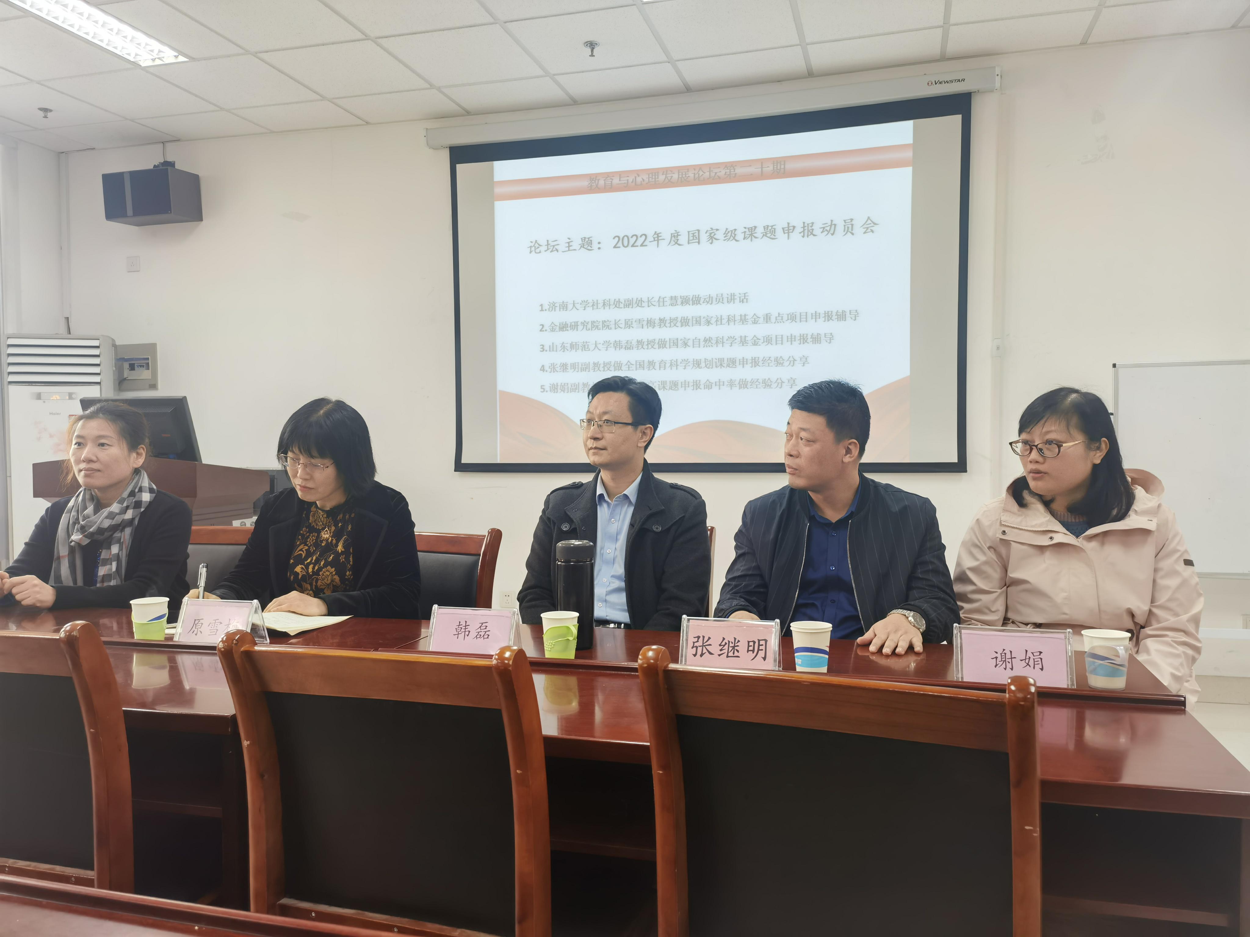 商学院原雪梅教授、山东师范大学韩磊教授、社科处副处长任慧颖、高等教育研究院张继明副教授和教心学院谢娟副教授分享了自己的课题申报经验,欧美无码