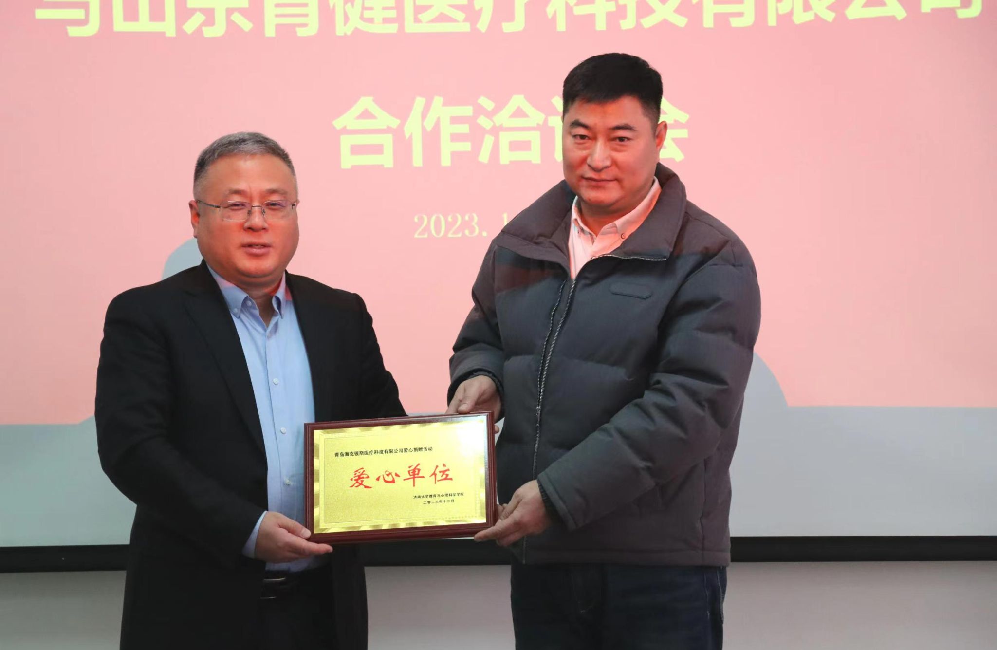 与山东育健医疗科技有限公司联合成立青少年心理发展与教育研究院及捐设备赠仪式在特教大楼513会议室举行,山东山东育健医疗科技有限公司总经理邹雪茜,我校优秀校友、青岛市临沂商会名誉会长杜华民,学校党委常委、副校长黄加栋出席仪式。合作发展处相关负责人、欧美无码