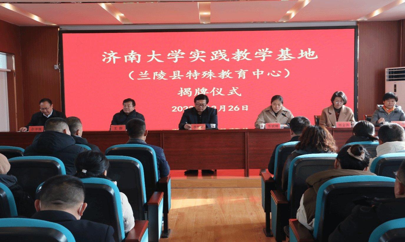 与兰陵县特殊教育中心举行实践教学基地和就业实习基地签约揭牌仪式。兰陵县委常委、宣传部部长、统战部部长、教育工委书记、县政协党组副书记苏妮娜,兰陵县教体局教育事业发展服务中心主任羿艳萍,兰陵县特殊教育中心主任曹计广,学院党委书记季竹君及相关负责老师出席仪式。仪式由兰陵县委教育工委常务副书记、县教体局党组书记、局长佘沛强主持。