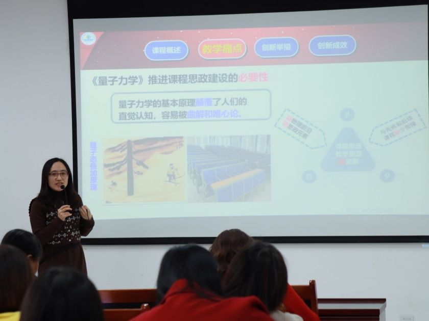 物理与技术学院课程思政教学名师王静副教授进行了“课程数字化中的课程思政”专题分享,学院多名教师参加。