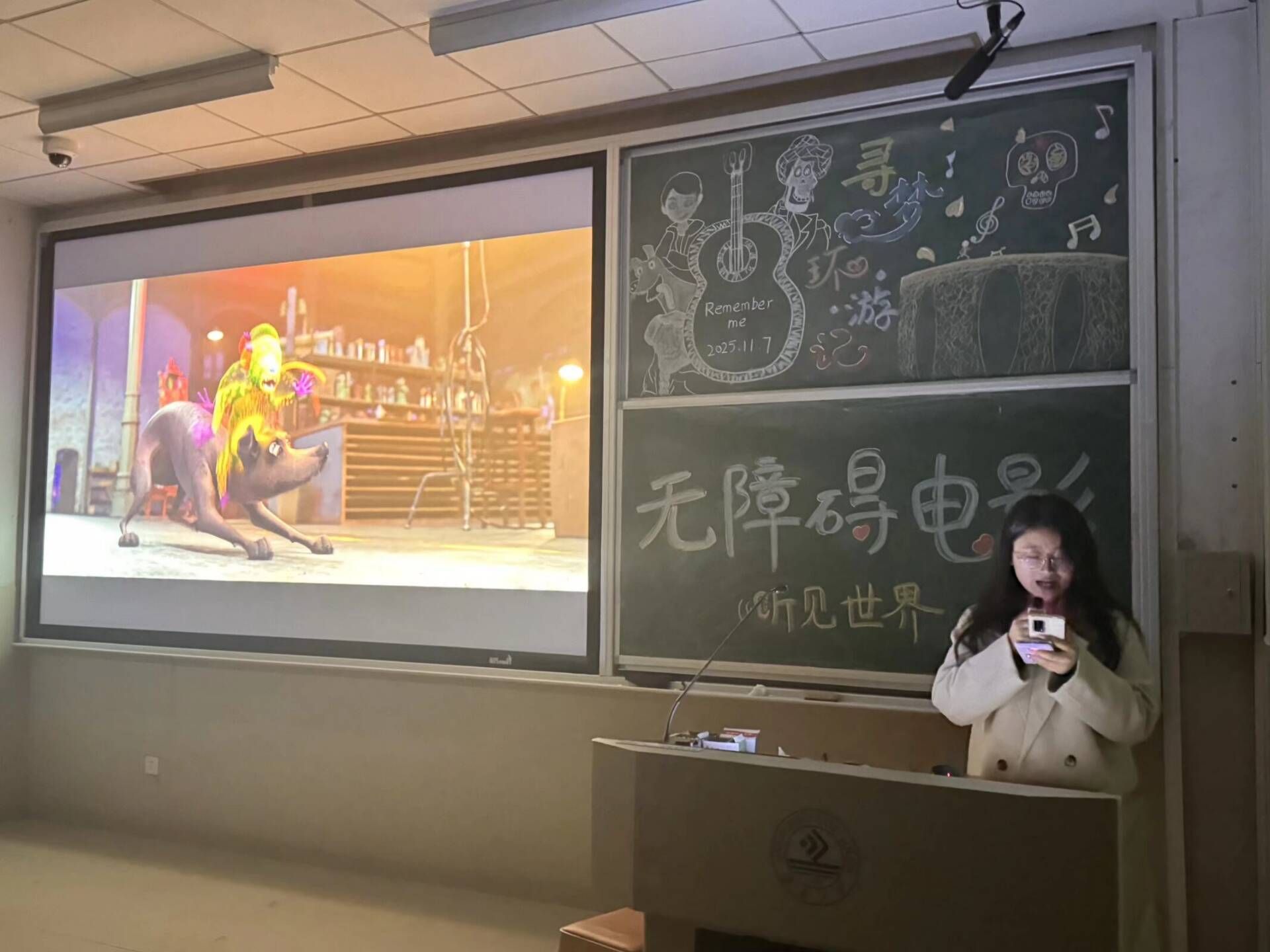 于11教2202举办“沉浸式盲感电影体验”活动,让同学们在沉浸式聆听中打破认知壁垒,学会共情。