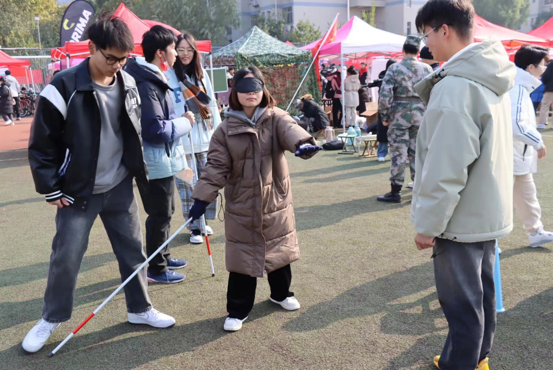 活动主要以引导参与同学使用盲杖,体验作为盲人的行动方式与学习简单手语为主。活动中,欧美无码